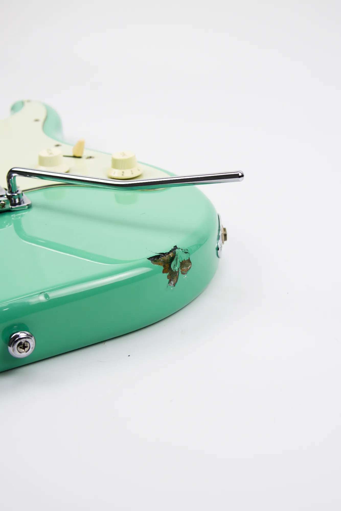 Osim kozmetičkog detalja na rubu tela (prikazan na jednoj od slika), gitara je u odličnom stanju. Vrat prav, šipka i čivije ispravni, pragovi dobri.
